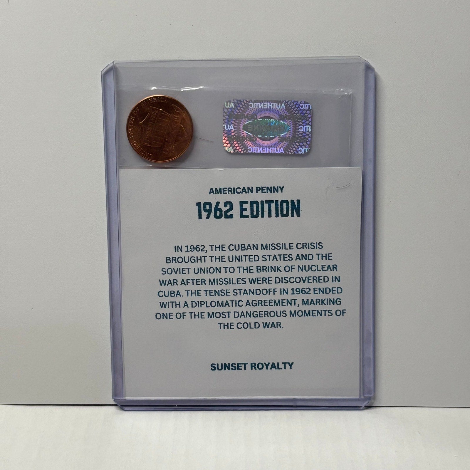 - Authentic U.S. Penny from the year listed, securely sealed in a trading card top loader