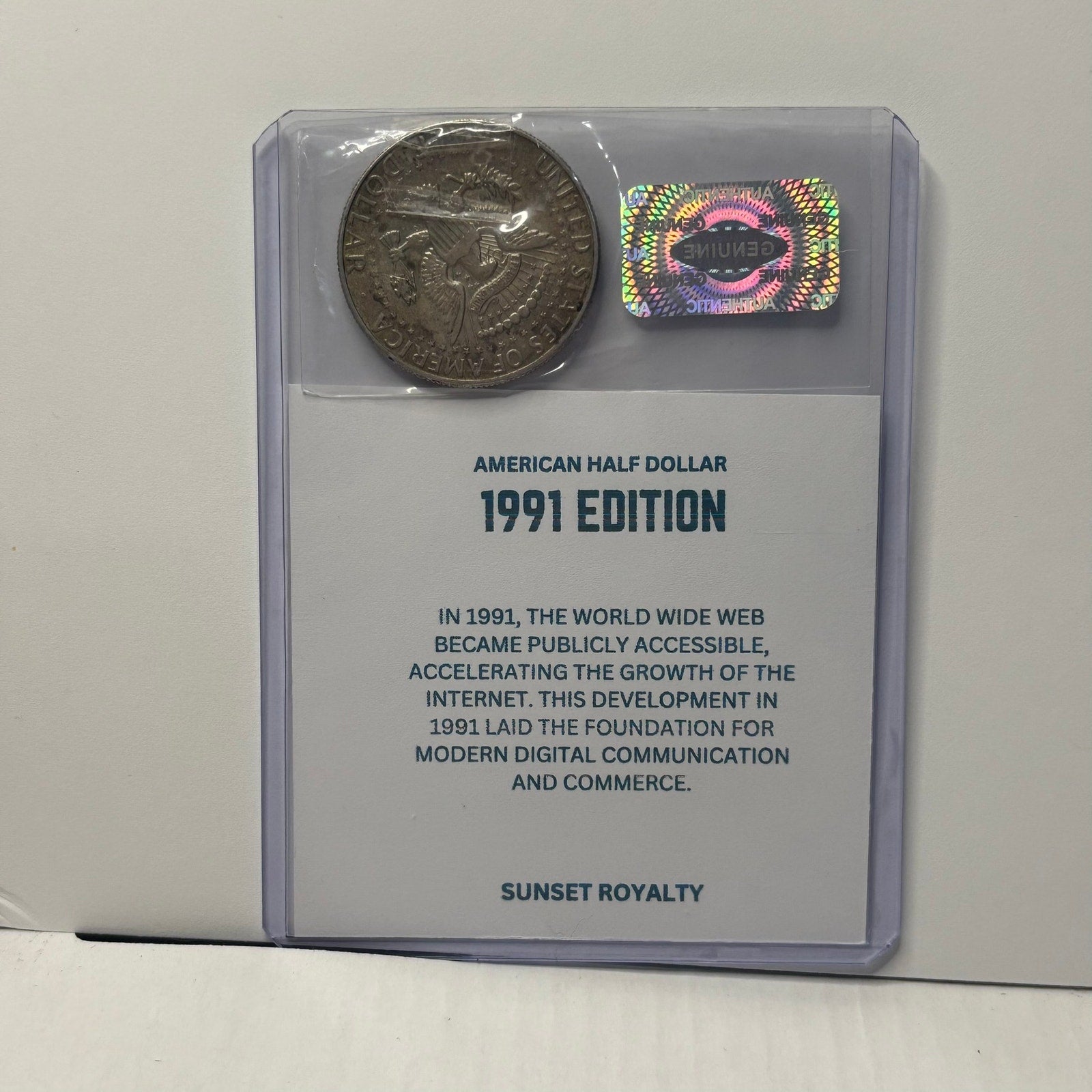 - Authentic U.S. Half Dollar from the year listed, securely sealed in a trading card top loader