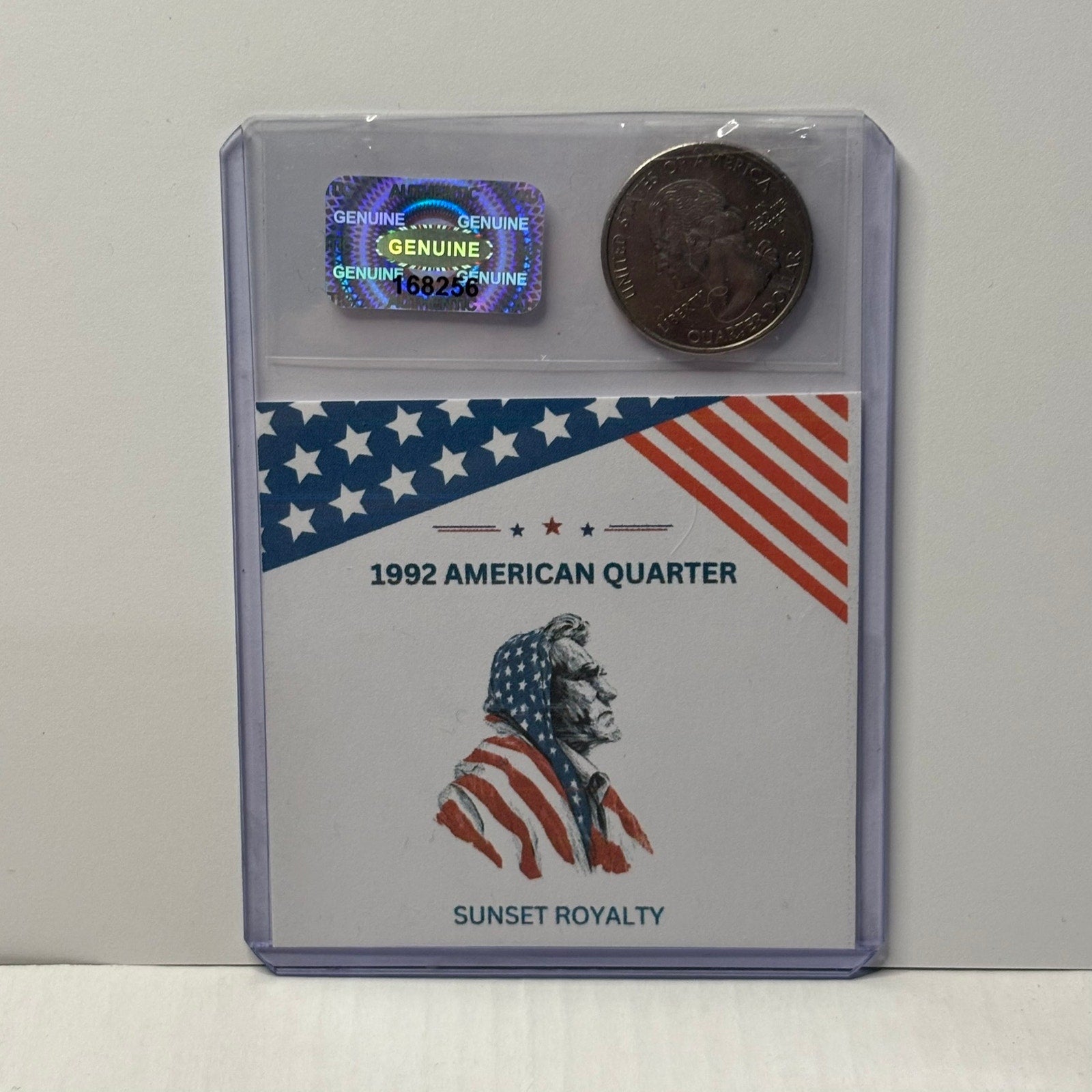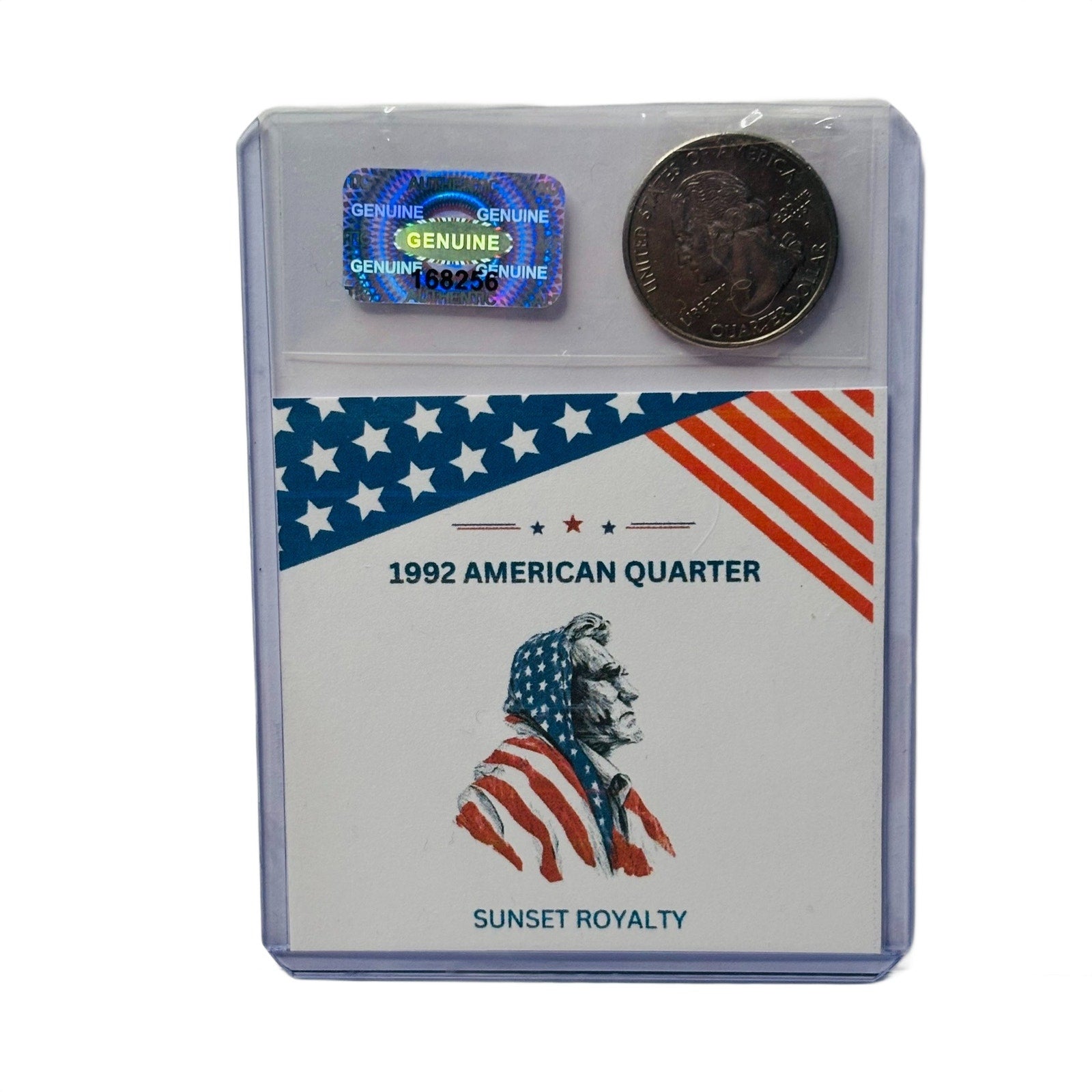 - Authentic U.S. Quarter from the year listed, securely sealed in a trading card top loader