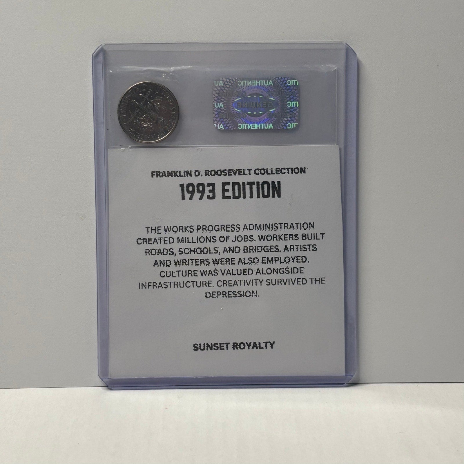 - Authentic U.S. Dime from the year listed, securely sealed in a trading card top loader