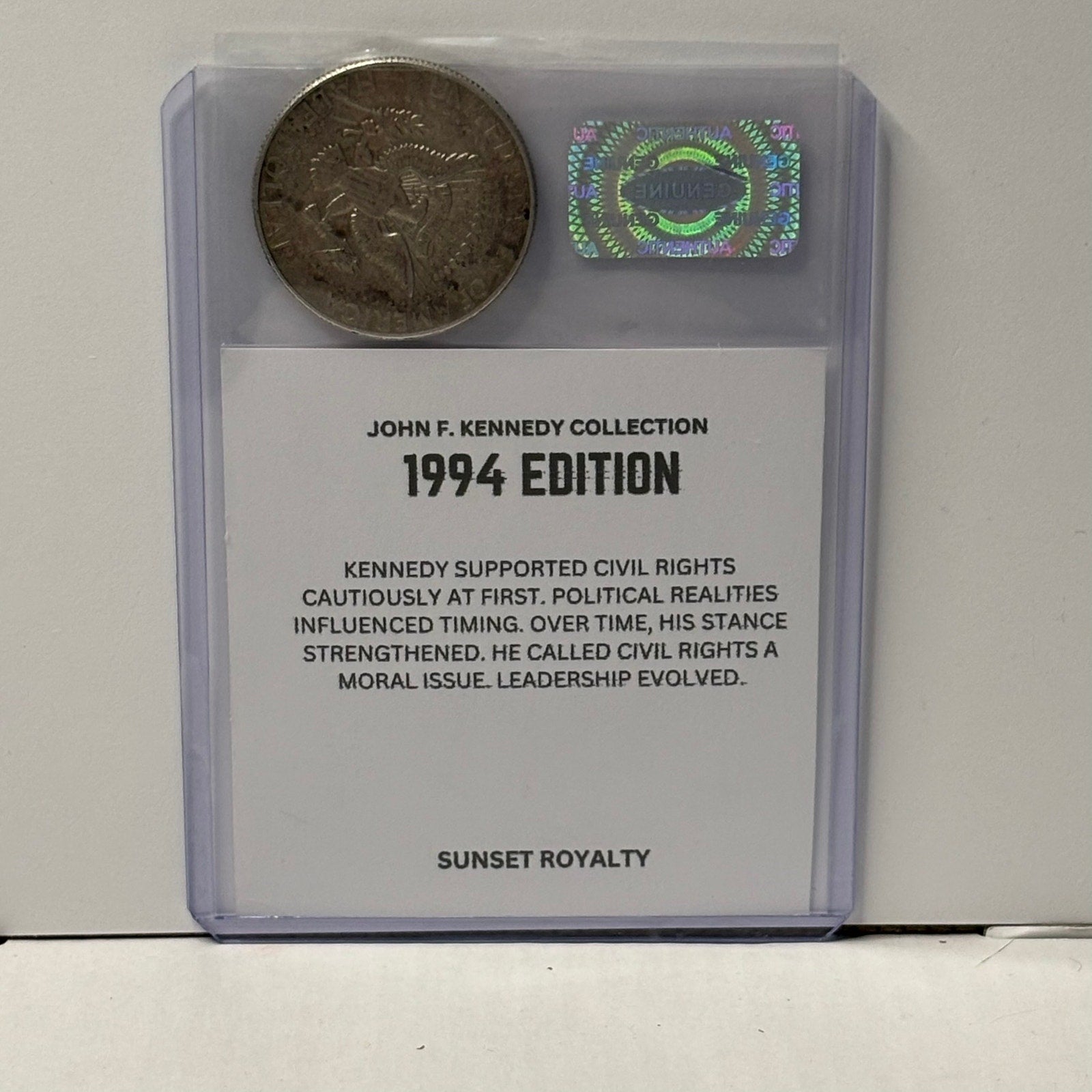 Photos shown are for display purposes only and use placeholder coins and stickers—your coin and card will be similar in style, but the year shown in the images may not match the actual coin you receive. This collection focuses exclusively on American Half Dollar Coins from 1975 through 2016, with a different card design and historical fact for every year featuring the great John F. Kennedy. A great addition for coin collectors, history fans, or anyone who loves unique, display-ready collectibles.