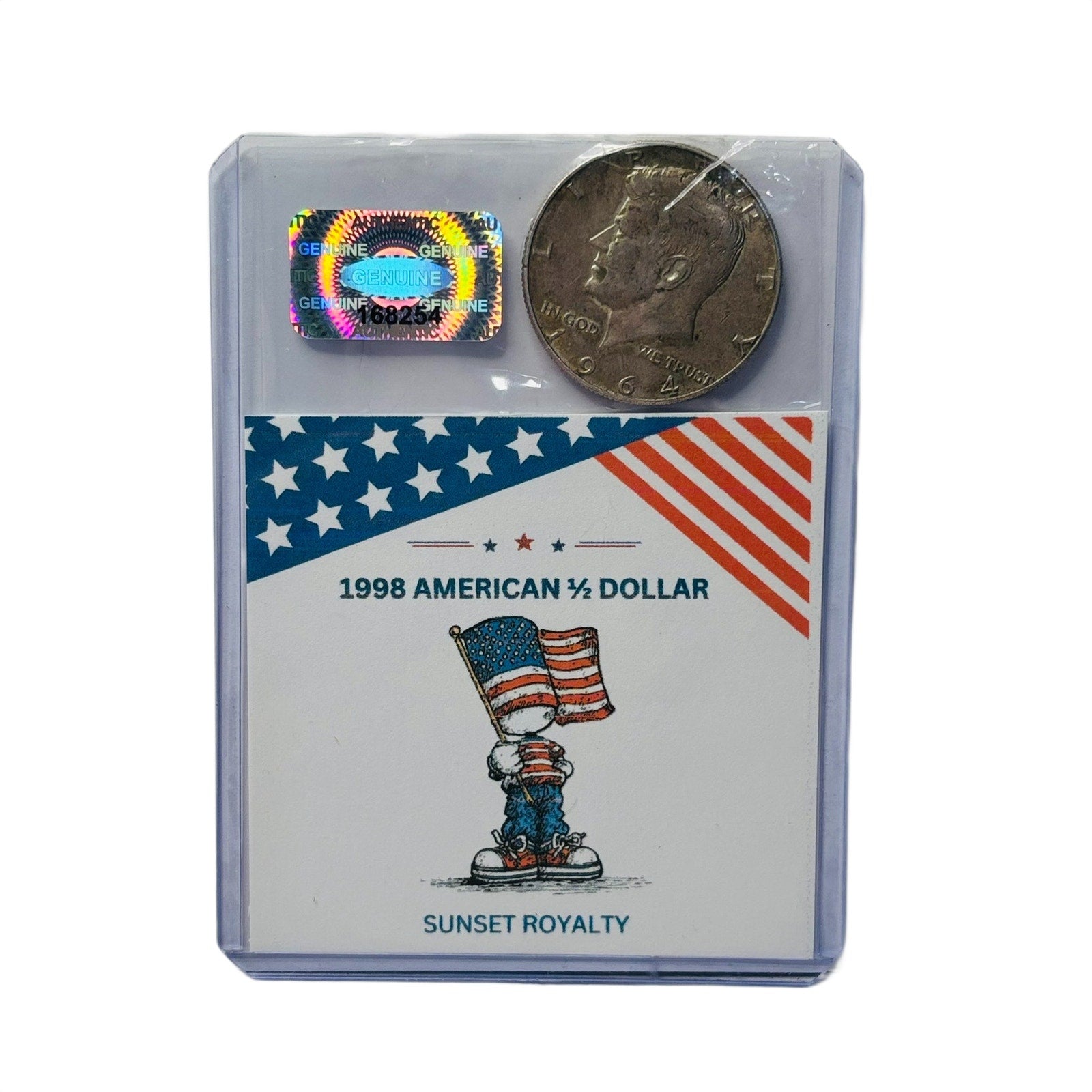 - Authentic U.S. Half Dollar from the year listed, securely sealed in a trading card top loader