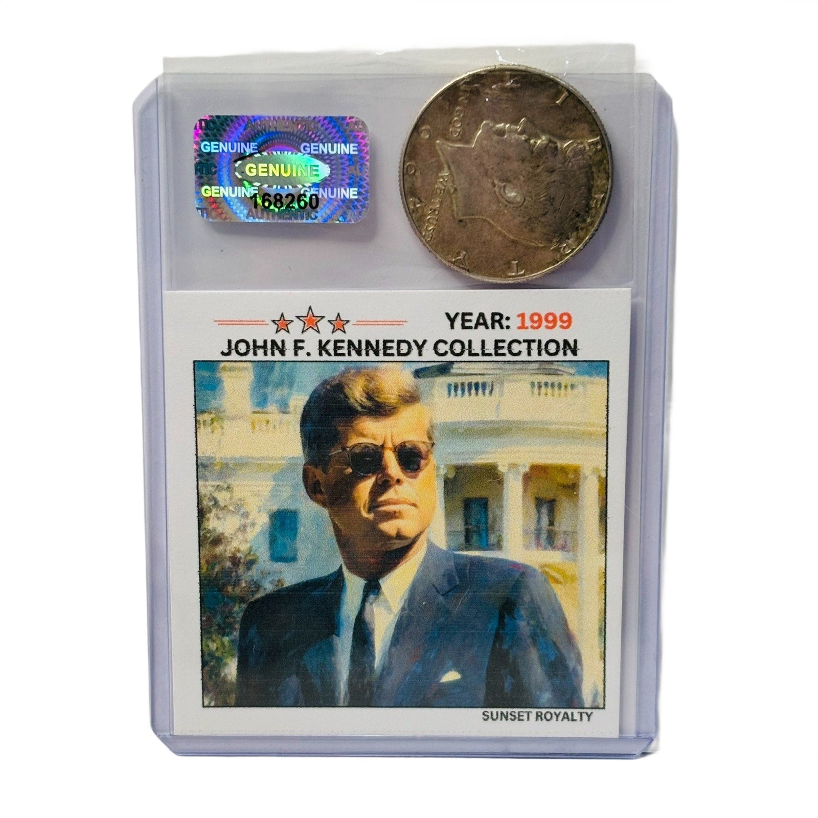 - Authentic U.S. Half Dollar from the year listed, securely sealed in a trading card top loader