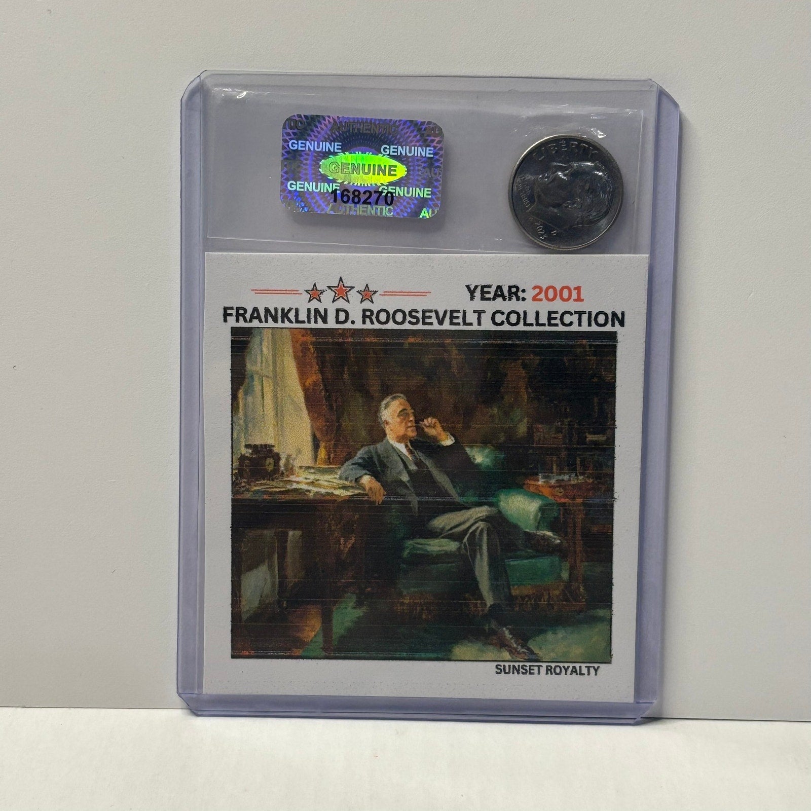 Photos shown are for display purposes only and use placeholder coins and stickers—your coin and card will be similar in style, but the year shown in the images may not match the actual coin you receive. This collection focuses exclusively on American Dime Coins from 1975 through 2016, with a different card design and historical fact for every year featuring the great Franklin Roosevelt. A great addition for coin collectors, history fans, or anyone who loves unique, display-ready collectibles.