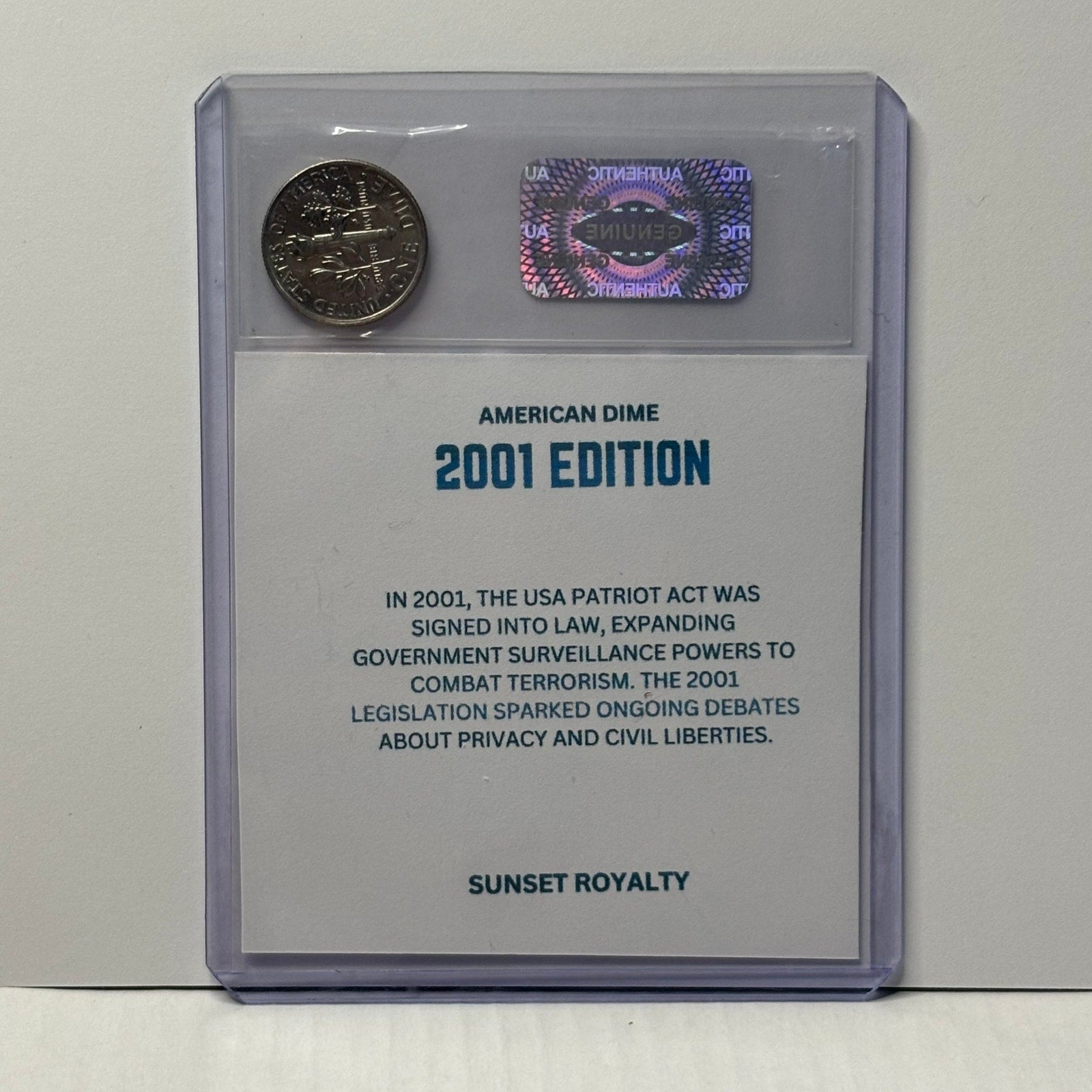 - Authentic U.S. Dime from the year listed, securely sealed in a trading card top loader