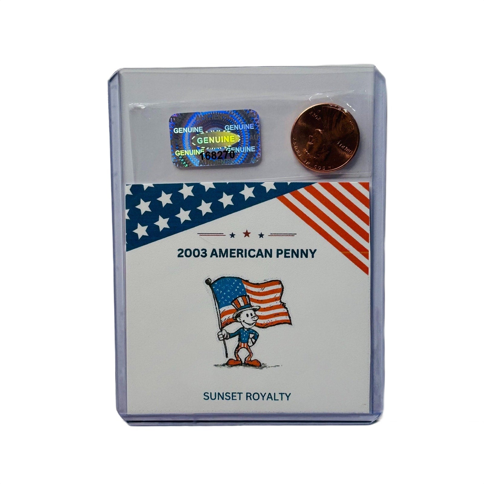 - Authentic U.S. Penny from the year listed, securely sealed in a trading card top loader