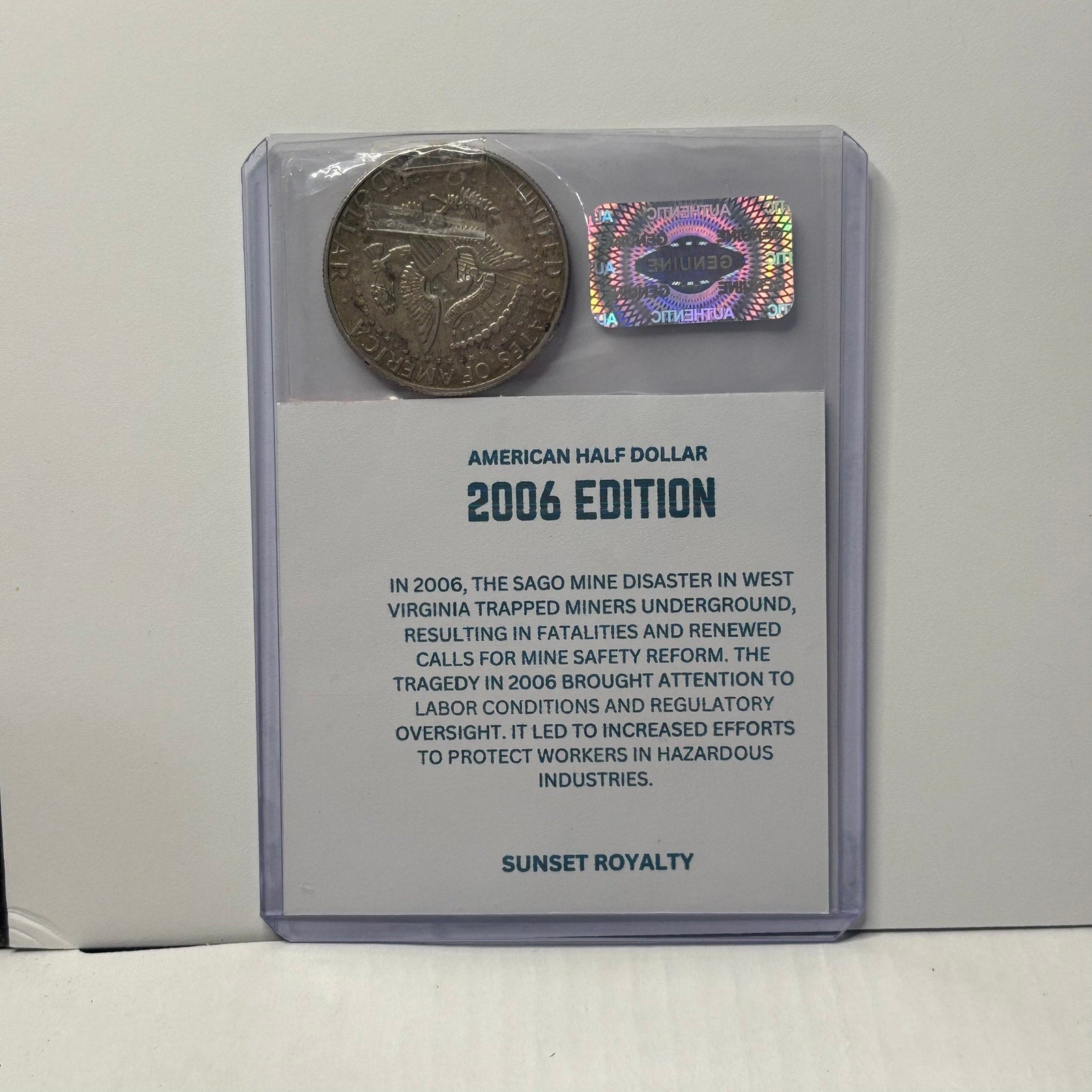 - Authentic U.S. Half Dollar from the year listed, securely sealed in a trading card top loader