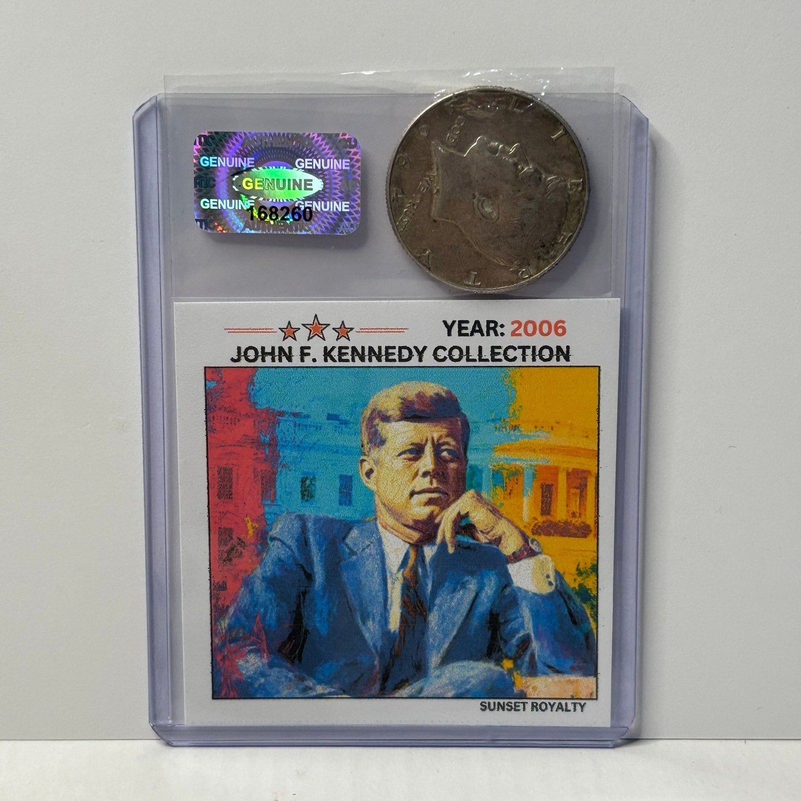 - Authentic U.S. Half Dollar from the year listed, securely sealed in a trading card top loader