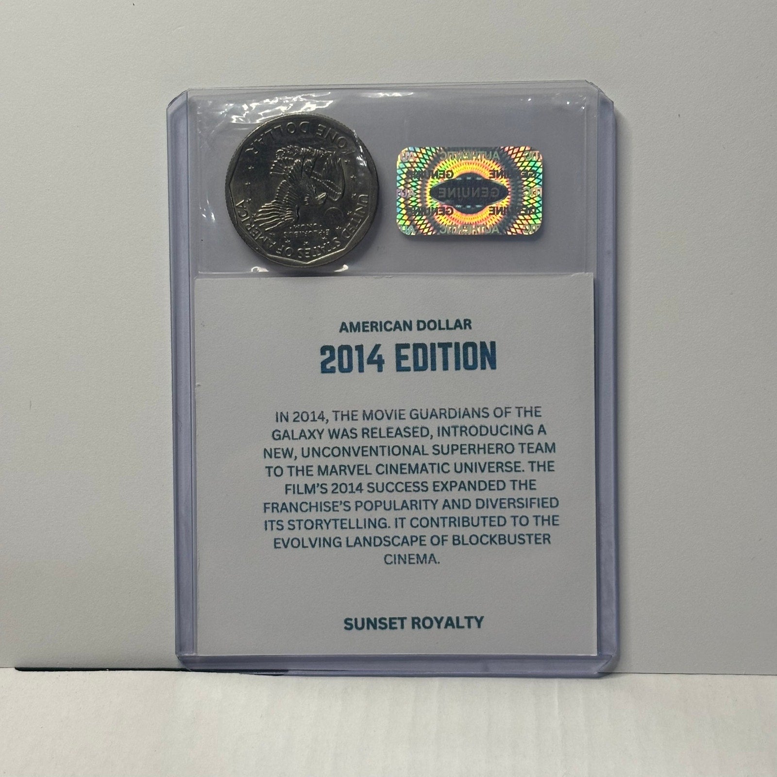 This collectible American Dollar Coin comes securely sealed in a trading-card style top loader case, featuring a custom coin card with a unique image on the front and a fun, historical fact about the coin’s year on the back. Each case includes the coin, the matching year card, and an applied authentication sticker for added collector confidence. Coins are authentic U.S. Dollars, and the year will always match the title of the listing, though coin condition is random and ungraded.