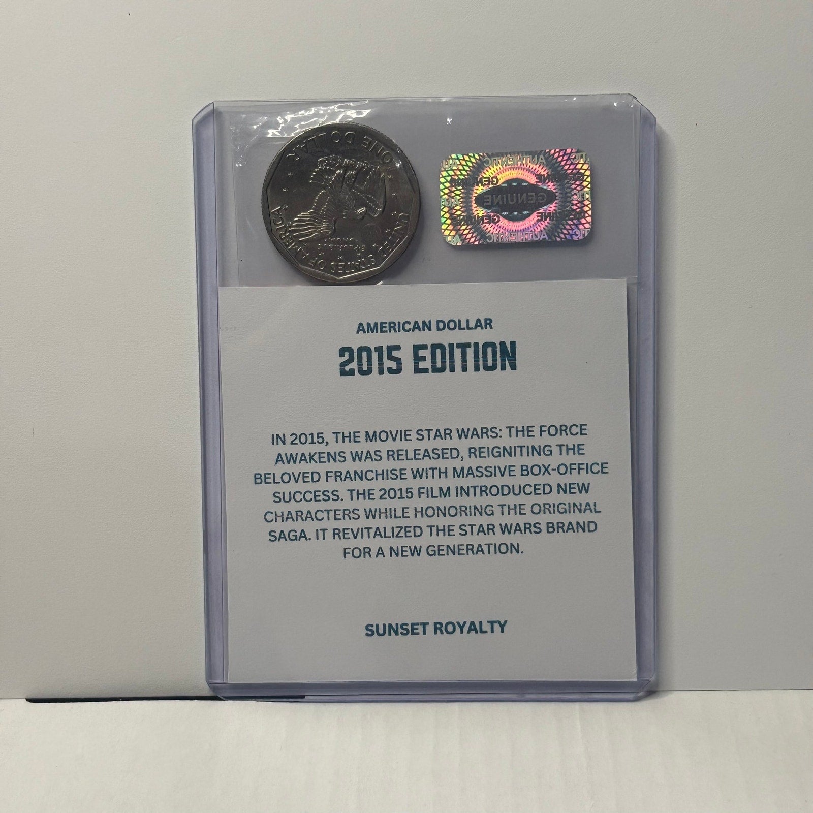 This collectible American Dollar Coin comes securely sealed in a trading-card style top loader case, featuring a custom coin card with a unique image on the front and a fun, historical fact about the coin’s year on the back. Each case includes the coin, the matching year card, and an applied authentication sticker for added collector confidence. Coins are authentic U.S. Dollars, and the year will always match the title of the listing, though coin condition is random and ungraded.