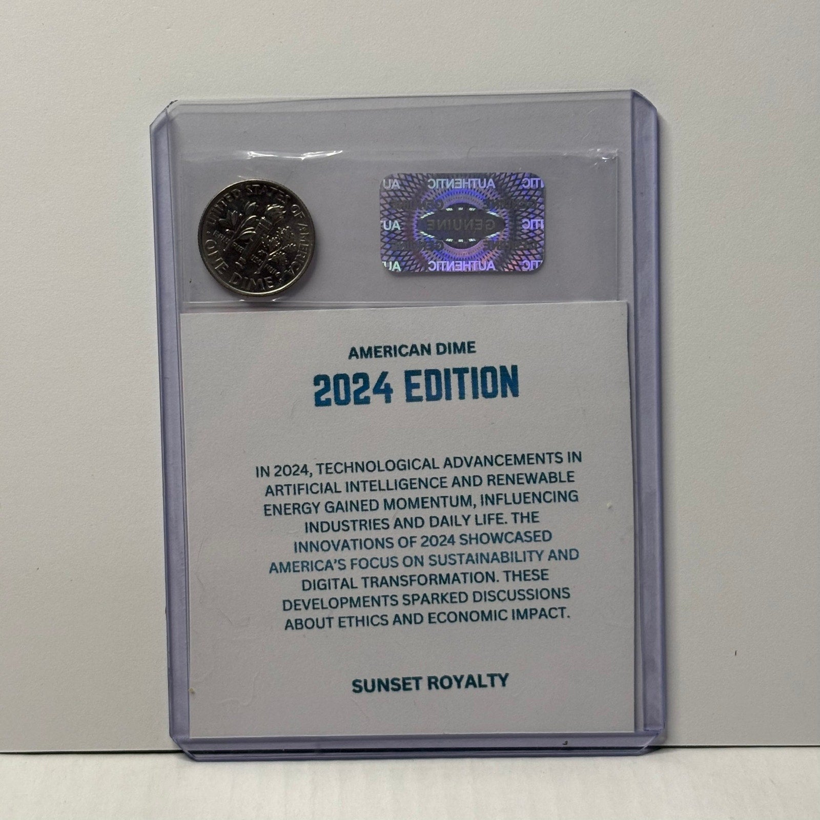- Authentic U.S. Dime from the year listed, securely sealed in a trading card top loader