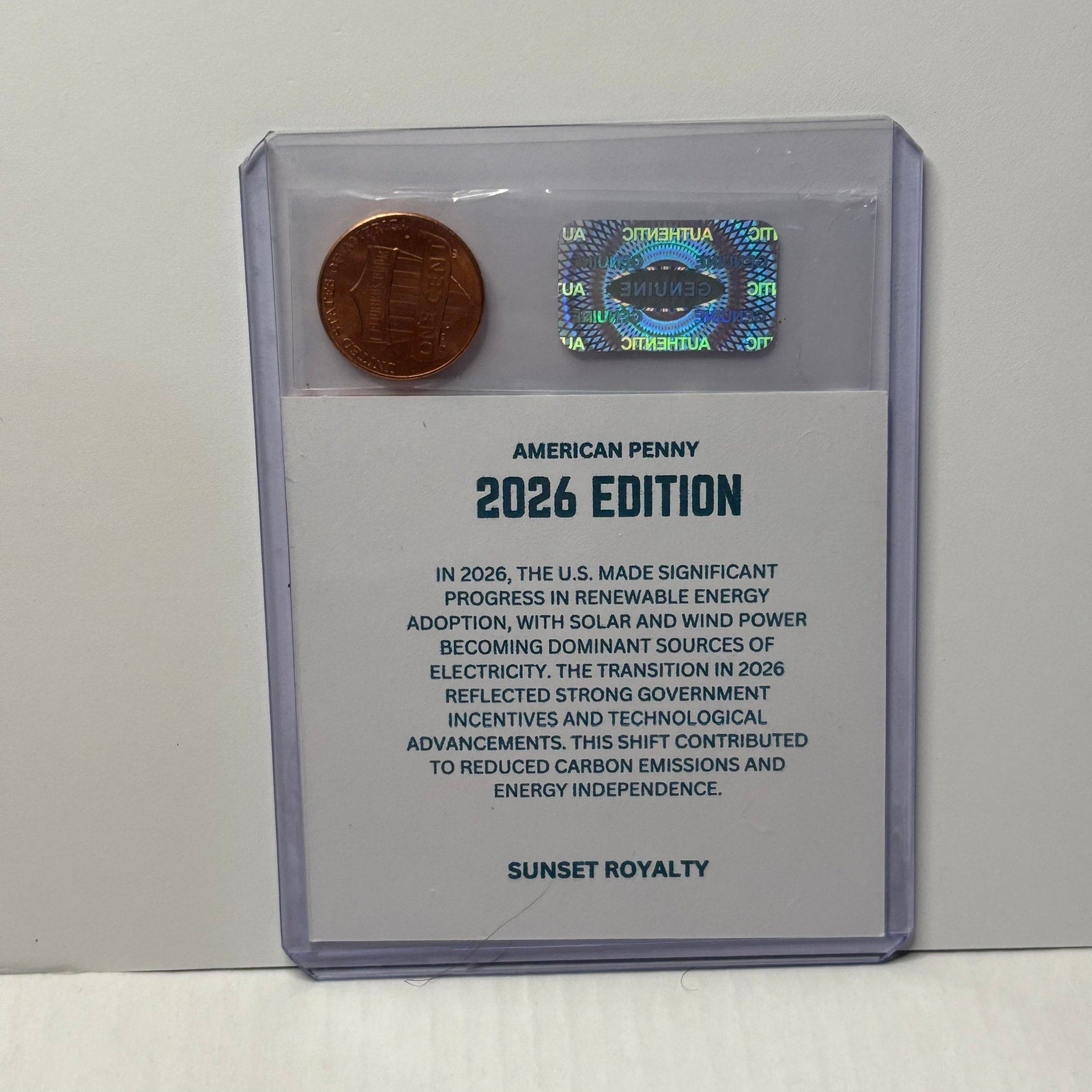 - Authentic U.S. Penny from the year listed, securely sealed in a trading card top loader