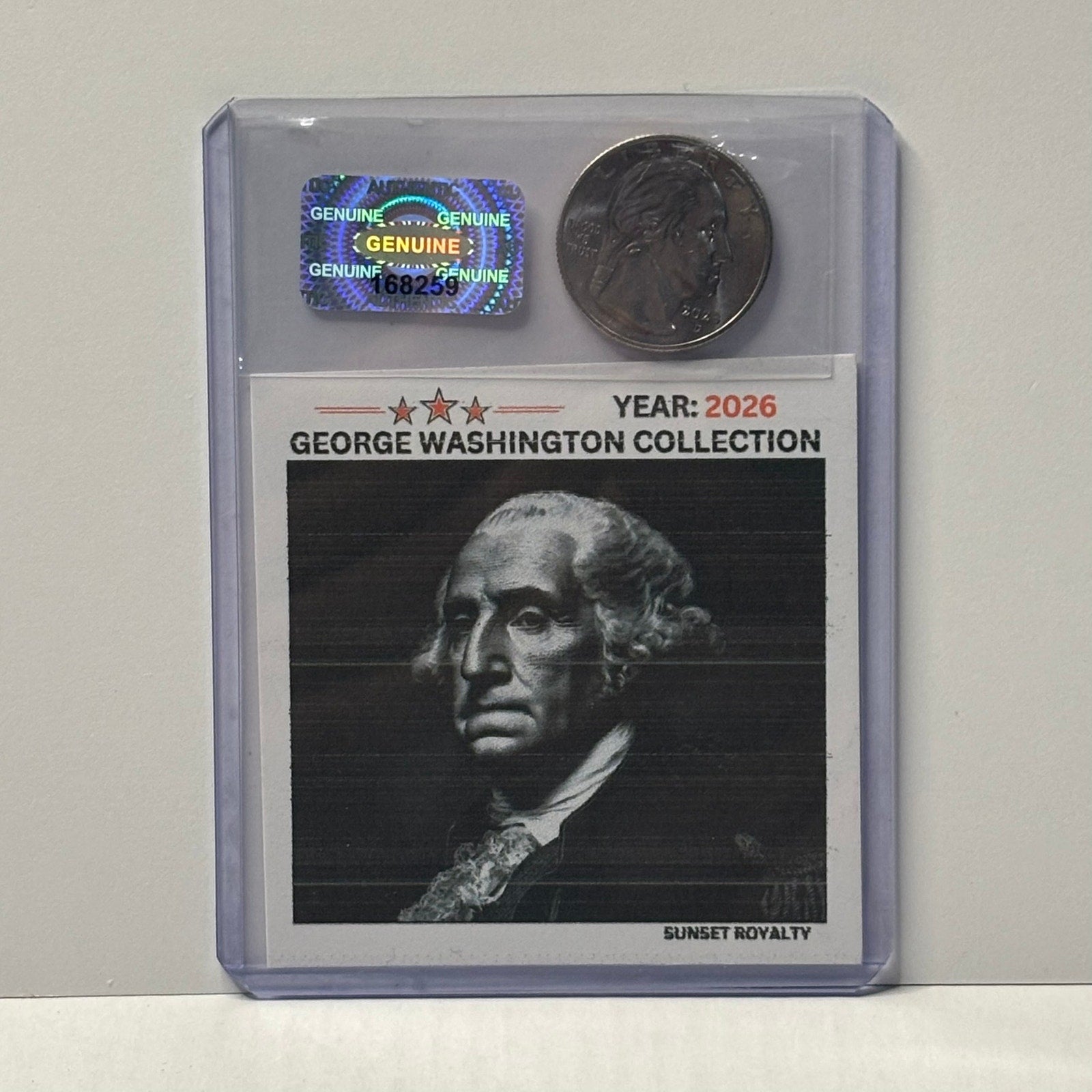 Photos shown are for display purposes only and use placeholder coins and stickers—your coin and card will be similar in style, but the year shown in the images may not match the actual coin you receive. This collection focuses exclusively on American Quarter Coins from 1975 through 2026, with a different card design and historical fact for every year featuring the great George Washington. A great addition for coin collectors, history fans, or anyone who loves unique, display-ready collectibles.